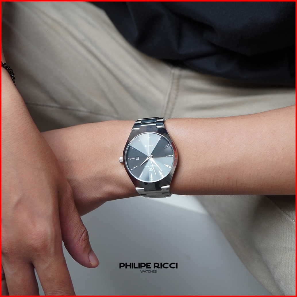 Philipe Ricci Jam Tangan Pria Rantai Analog Hitam Tipis 100 Ori Keren 7597 Men Watches Free Baterai