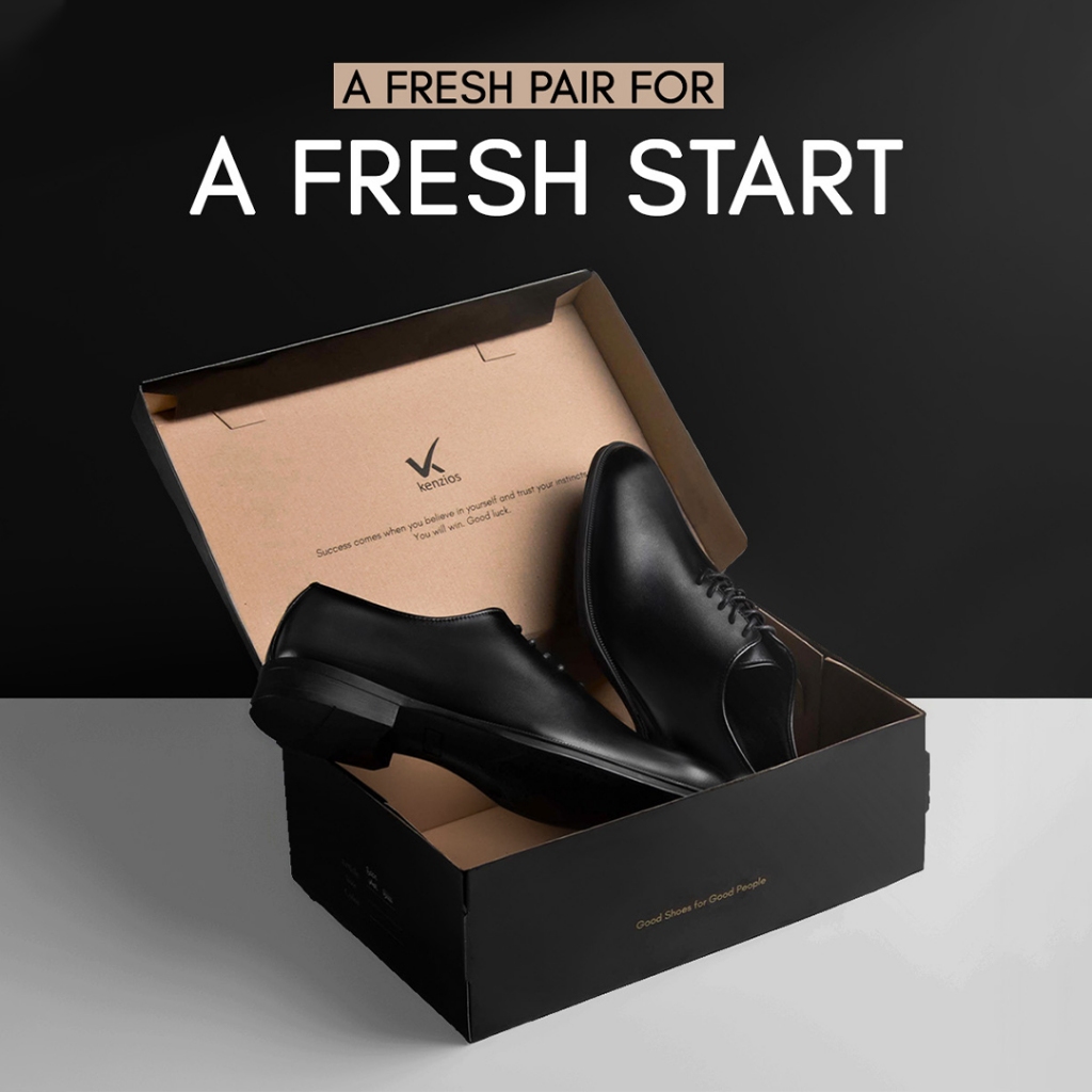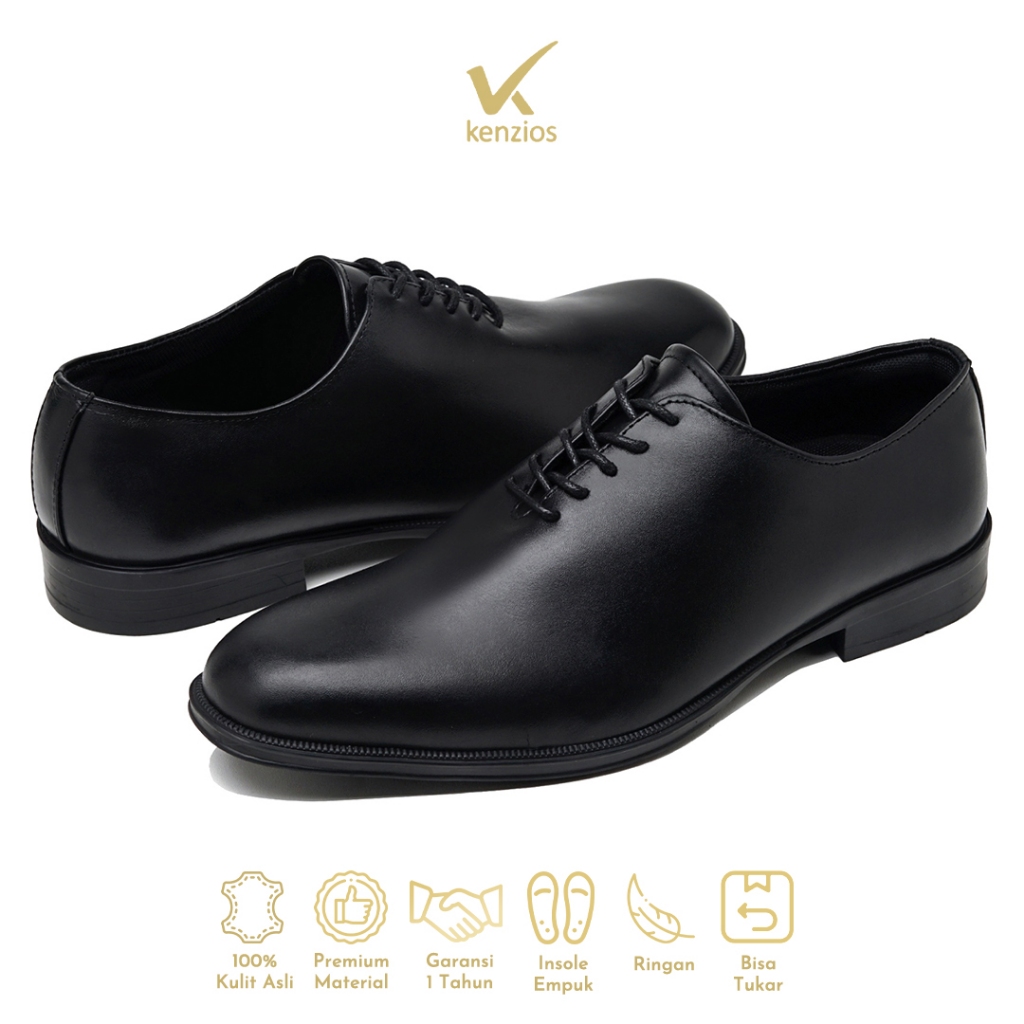 Kenzios BASE Whole Black Sepatu Kerja Formal Pria Kulit Asli
