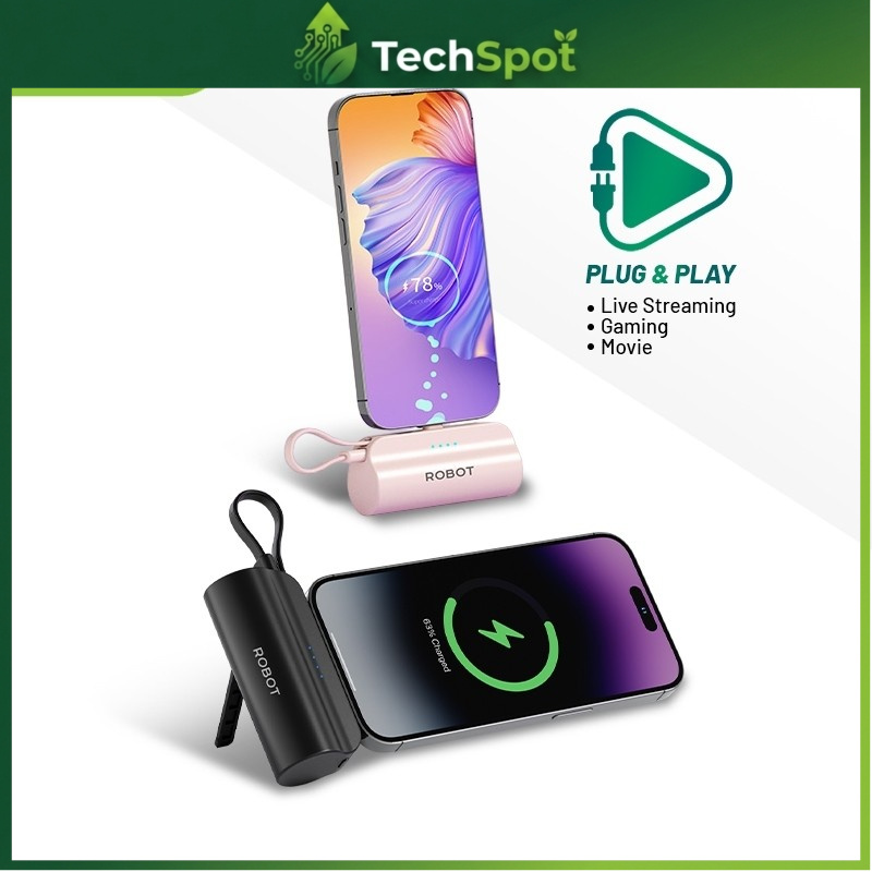 [Star] ROBOT Powerbank Mini 4.500 mAh Fast Charging Lightning/Type C Compatible for Android/Iphone RP-051 Free Kabel
