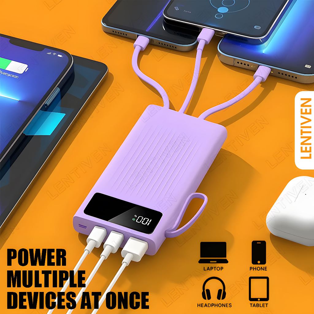 [Star] PUNING LENTIVEN Powerbank 30000 mAh Mini with 4 Kabel Data Usb Fast Charging PJ57