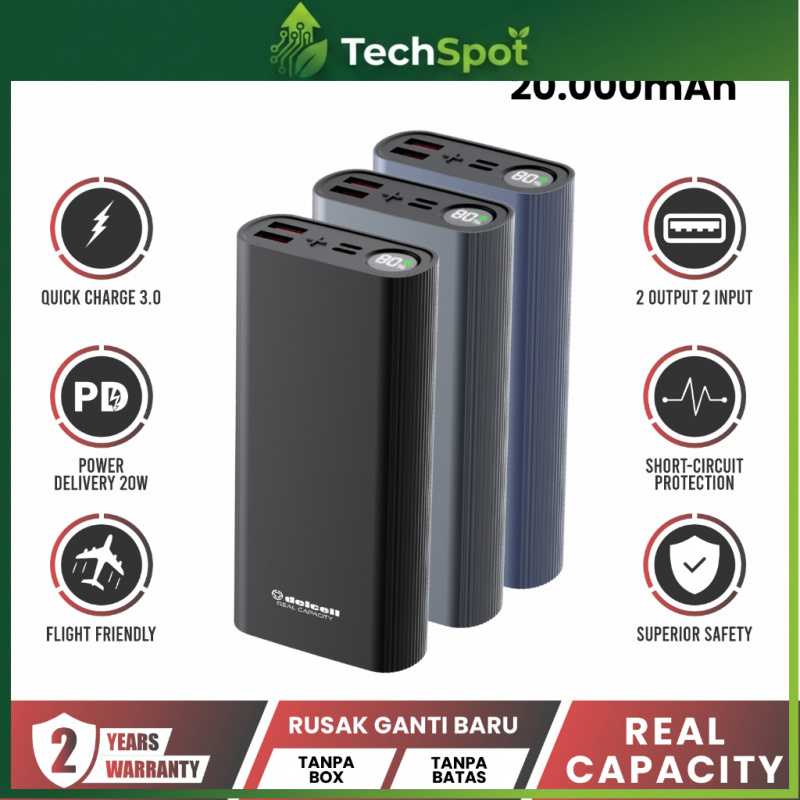 [Star] Delcell Trek Powerbank 20000mAh Fast Charging 22.5W LED Display PD +QC Fast Charging Original