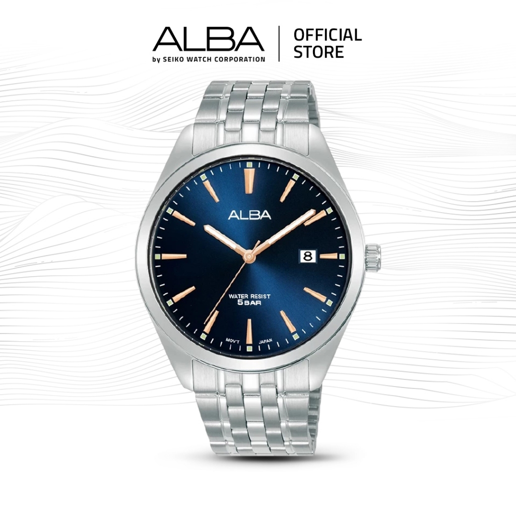 Alba Jam Tangan Pria AS9Q95 / AS9Q95X1 Quartz Blue Dial Stainless Steel Strap Watch