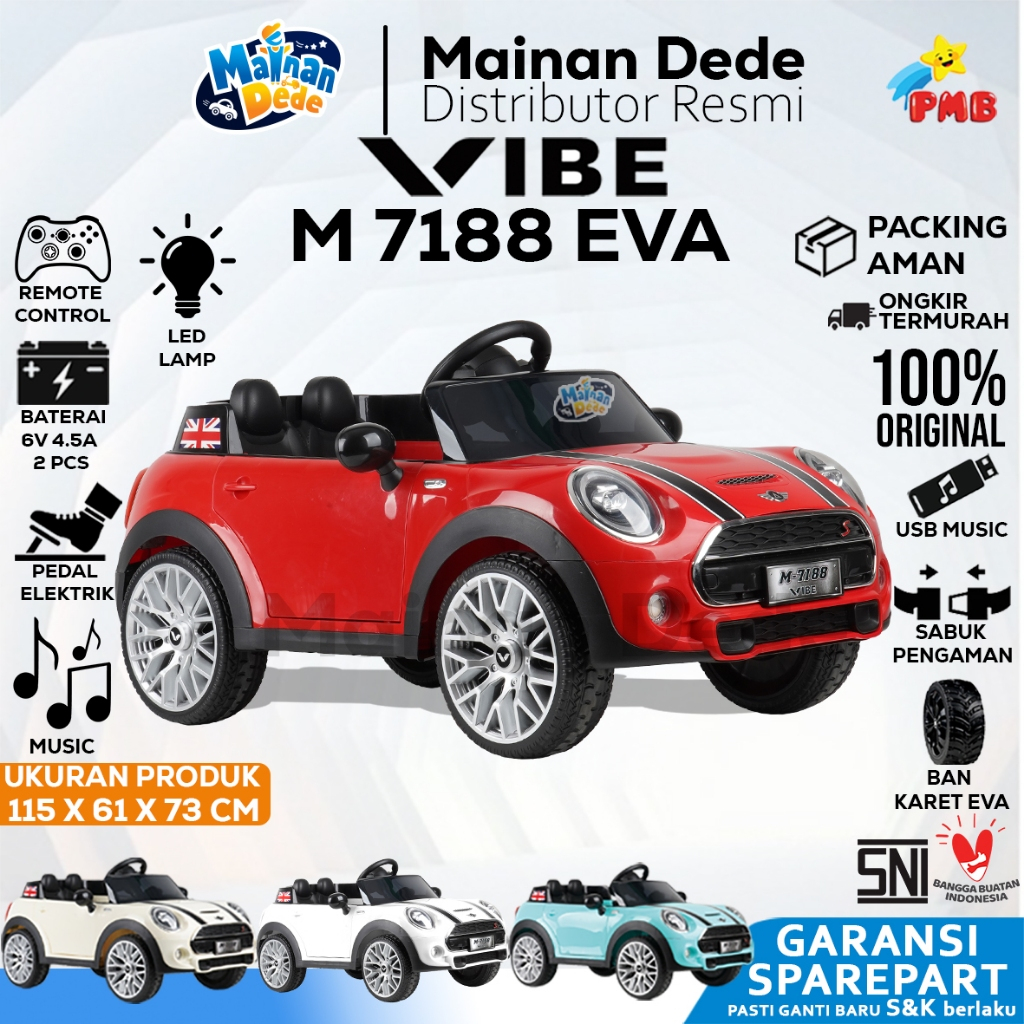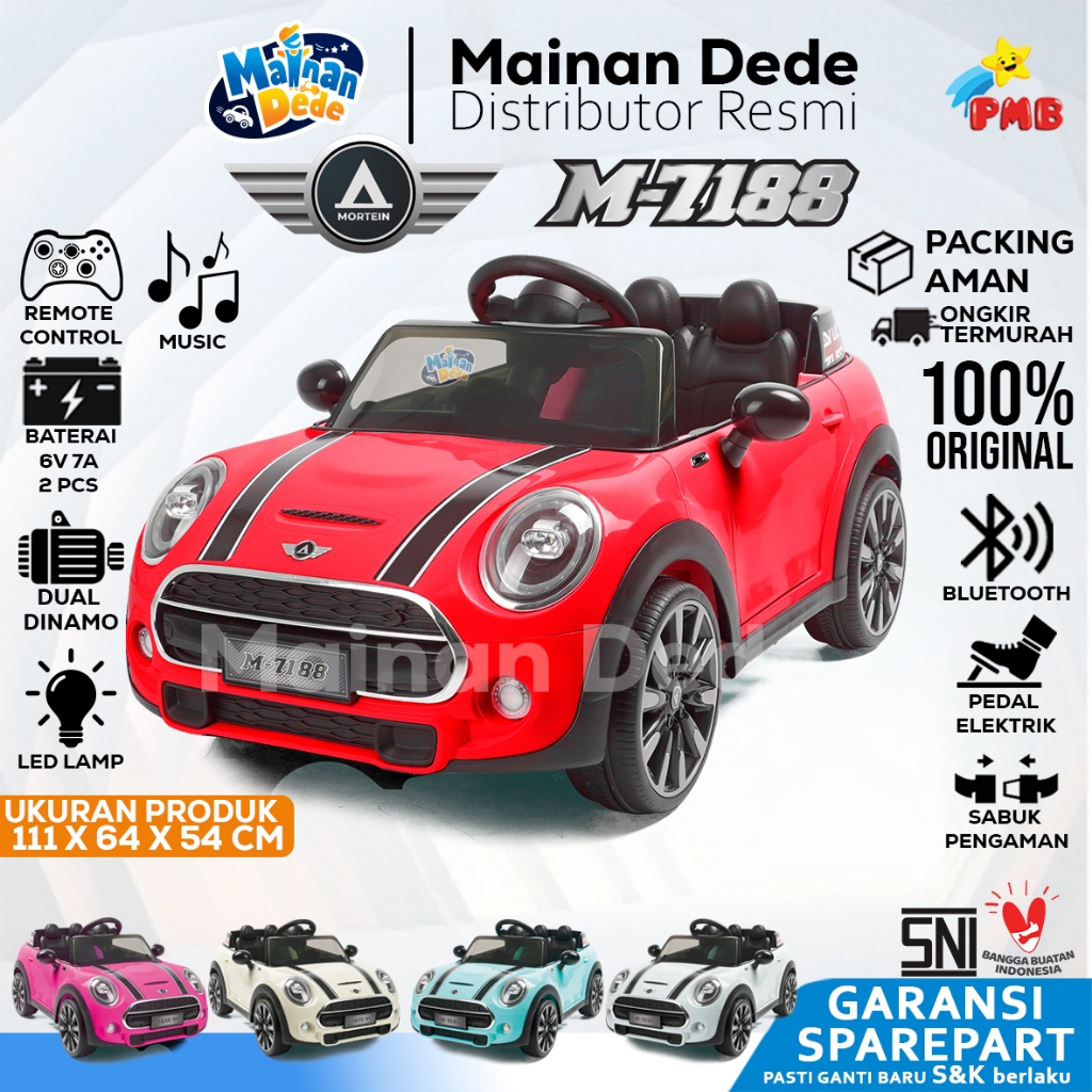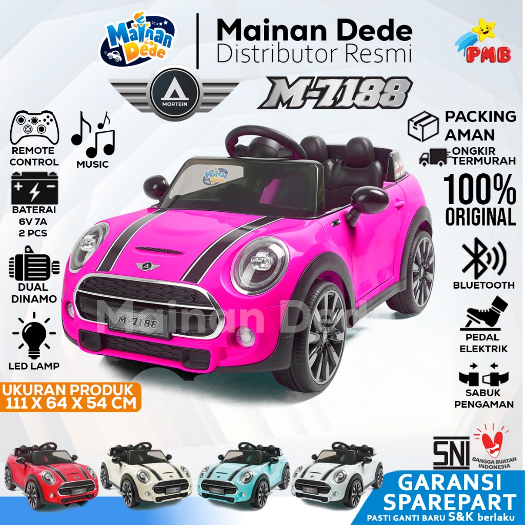 Mainan Mobil Aki Anak PMB 7188 Mortein Mini Cooper M7188 dual motor / PMB 7188 VIBE Ban Karet