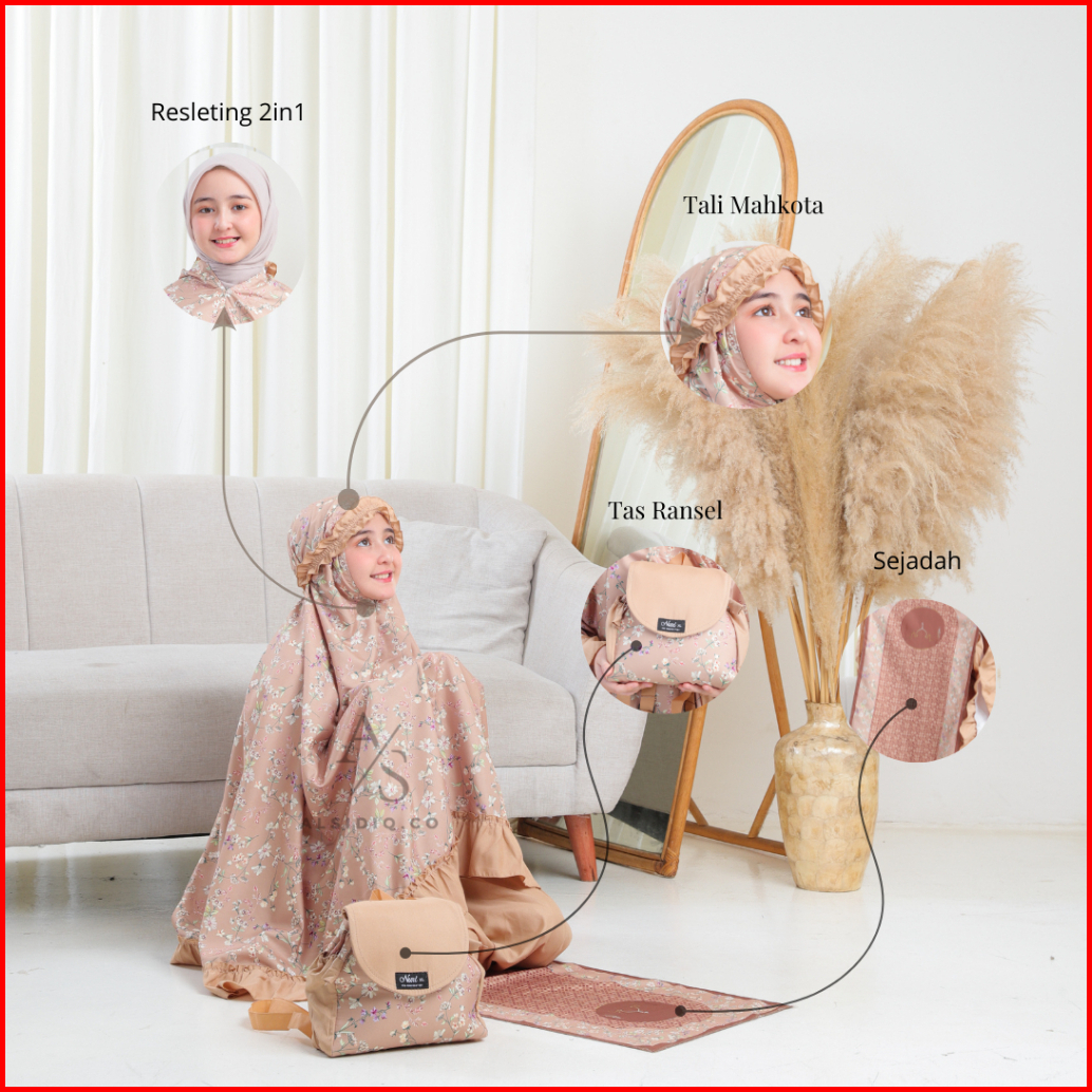 Mukena Anak Katun Tas Ransel Sejadah 2in1 Resleting Premium Usia 2 - 15 Tahun