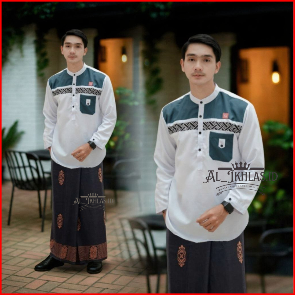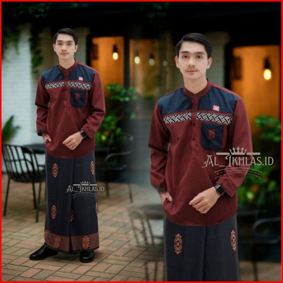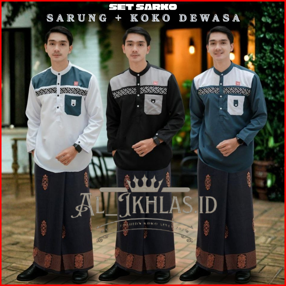 Setelan Baju Koko Sarung Pria Dewasa Lengan Panjang Terbaru Kain Katun Koko Batako 2025