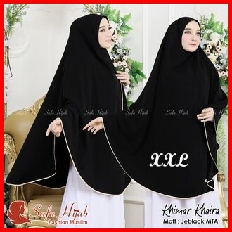 Khimar Syari Jetblack Mta Khimar Khaira List Pita Warna Polos Super Cantik Pet Dan Non Pet Jilbab Jumbo Hitam Pekat Katu