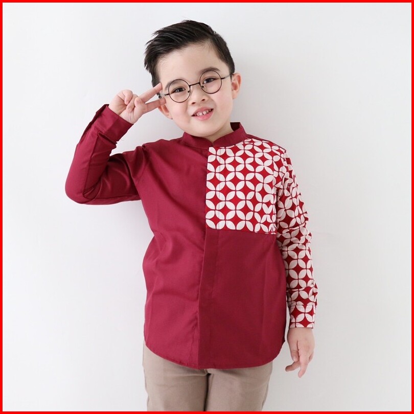 Yobebee Kemeja Batik Tangan Panjang Anak Laki Laki Usia 2 4 6 8 10 12 Tahun Baju Atasan Kids Casual Formal Katun Kemeja