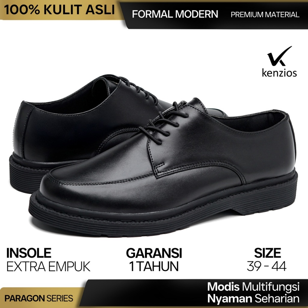 KENZIOS | PARAGON Black | Sepatu Formal Pria Kulit Asli | Sepatu Kerja Pria | Sepatu Chunky Pria | Size 39-44