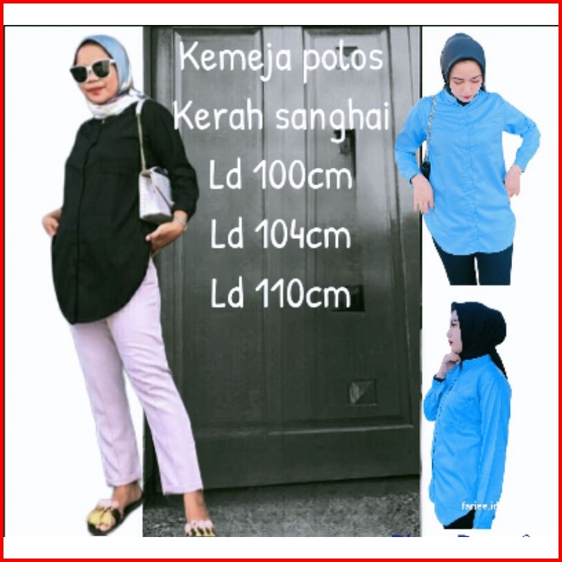 Kemeja Basic Polos Kerah Sanghai Ld 100-110cm Kemeja Toyobo Tangan Panjang