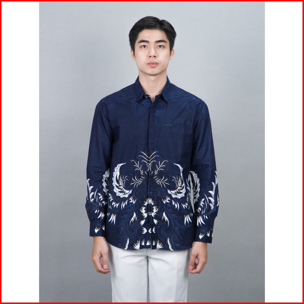 Swipe Up Kemeja Batik Pria Modern Slimfit Katun Lengan Panjang Motif Katsura Navy