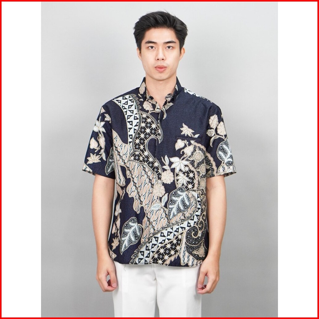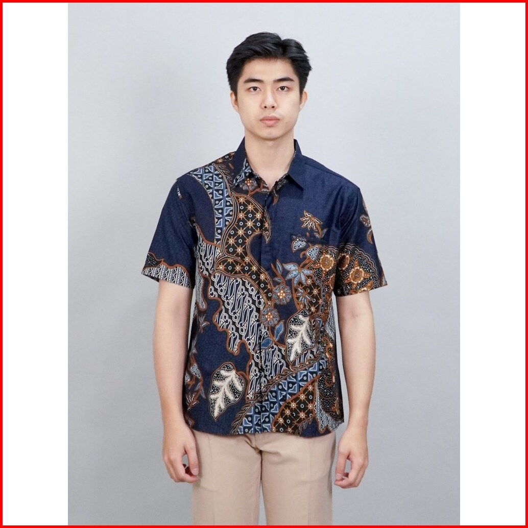Swipe Up Kemeja Batik Pria Modern Lengan Pendek Akai Navy Brown