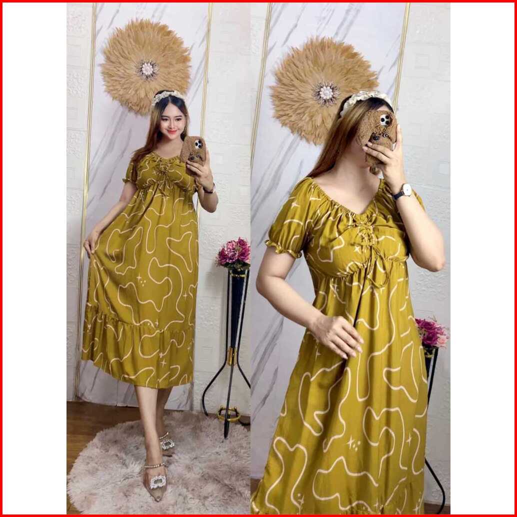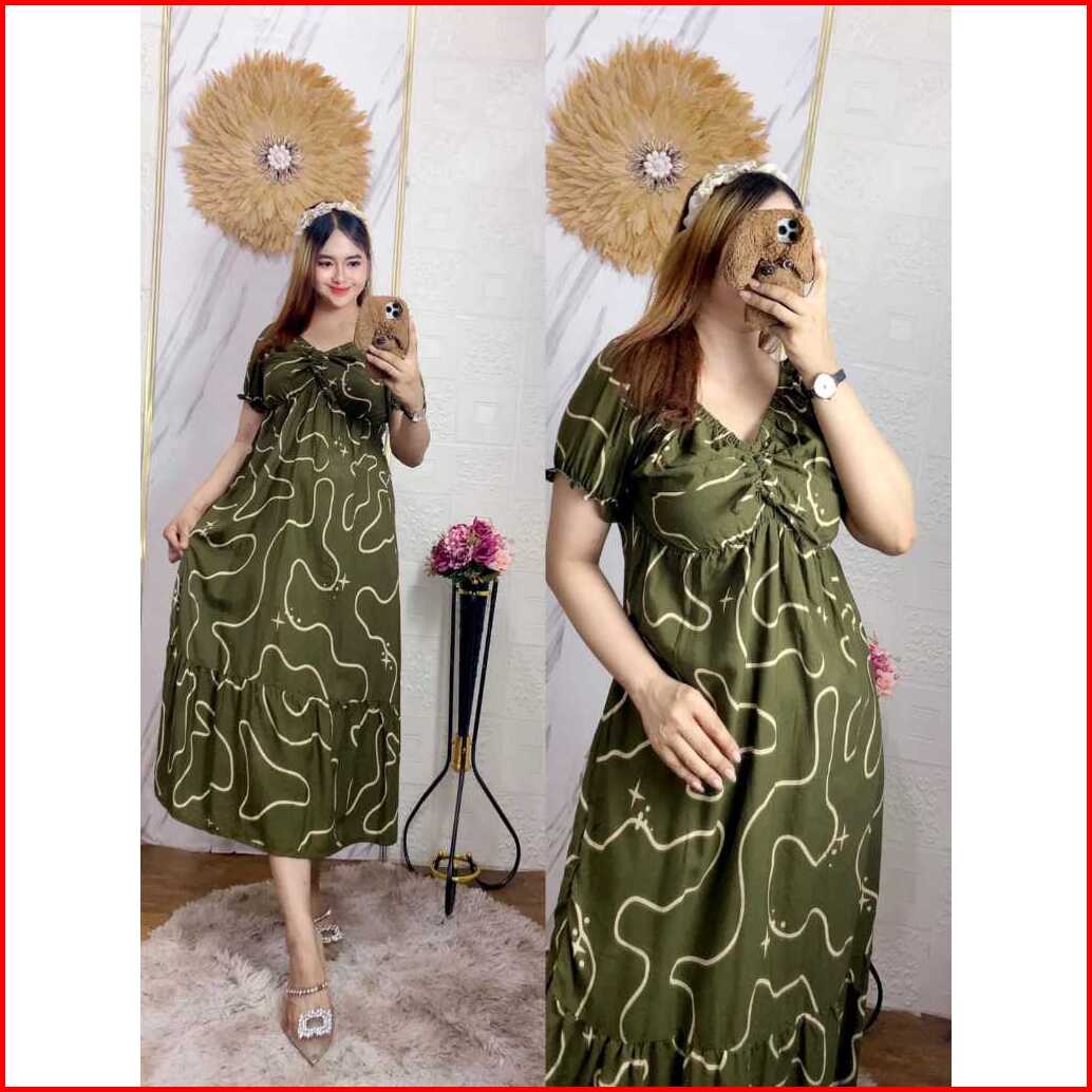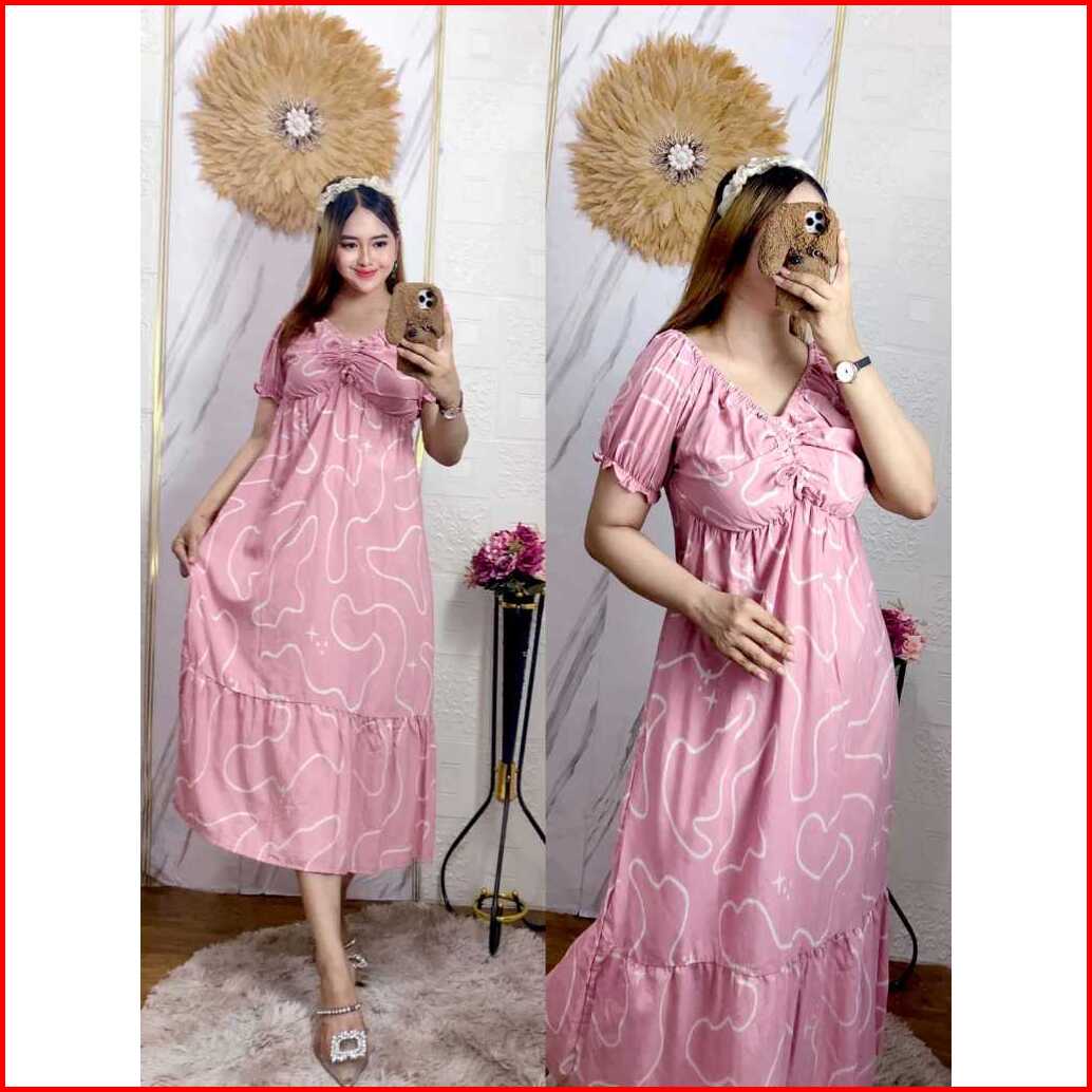 New Daster Serut Dada Terbaru Motif Busui Bumil Dress Elsa Serut Dada Rayon