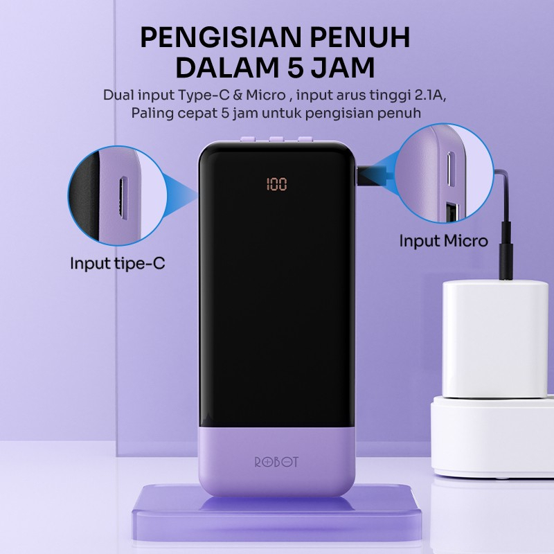[Star] Powerbank ROBOT 10000mAH RP-101L/ RP-201L New 2.1A Dengan 3 Kabel Type C Garansi 1 T