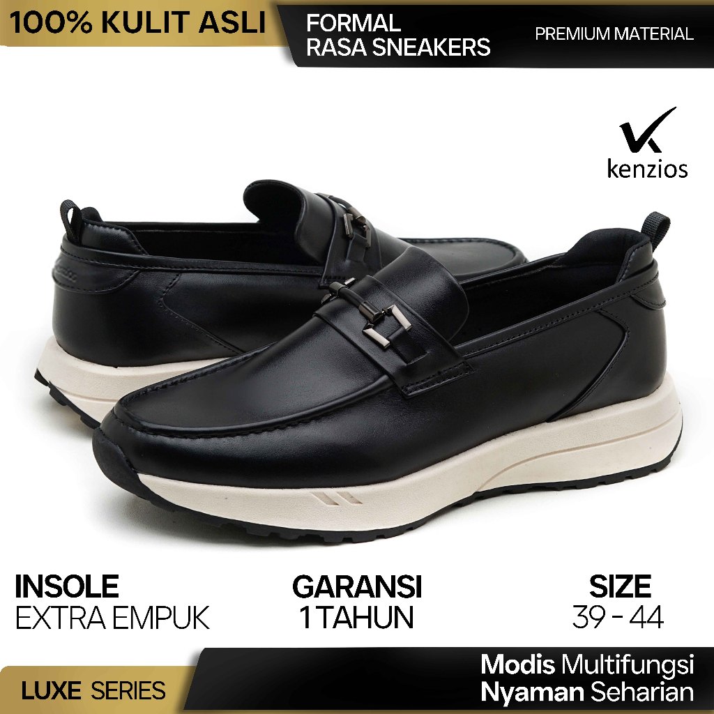 KENZIOS LUXE Black - Sepatu Formal Pria Kulit Asli - Sepatu Kondangan Loafer Slip On - Size 39-44