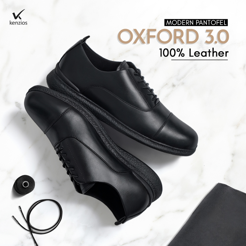 Kenzios Sepatu Formal Pria Kulit Asli Oxford 3.0 Black Series