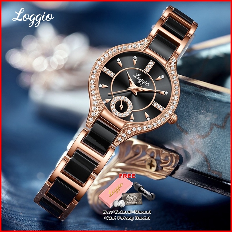 Loggio Jam Tangan Wanita Besi Rantai Analog Terbaru Mode Women Watche Jam Tangan Cewek