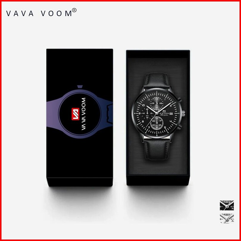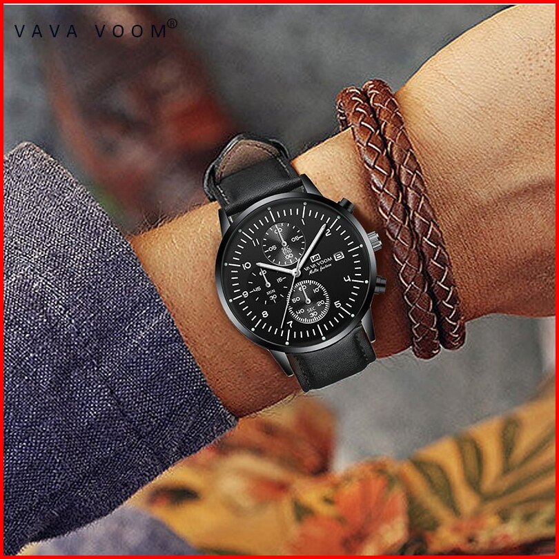 Vavavoom Jam Tangan Pria 100 Original Chrono Aktif Sporty Kulit Tahan Air Cowok Kronograf Luminous Quartz Analog Tanggal