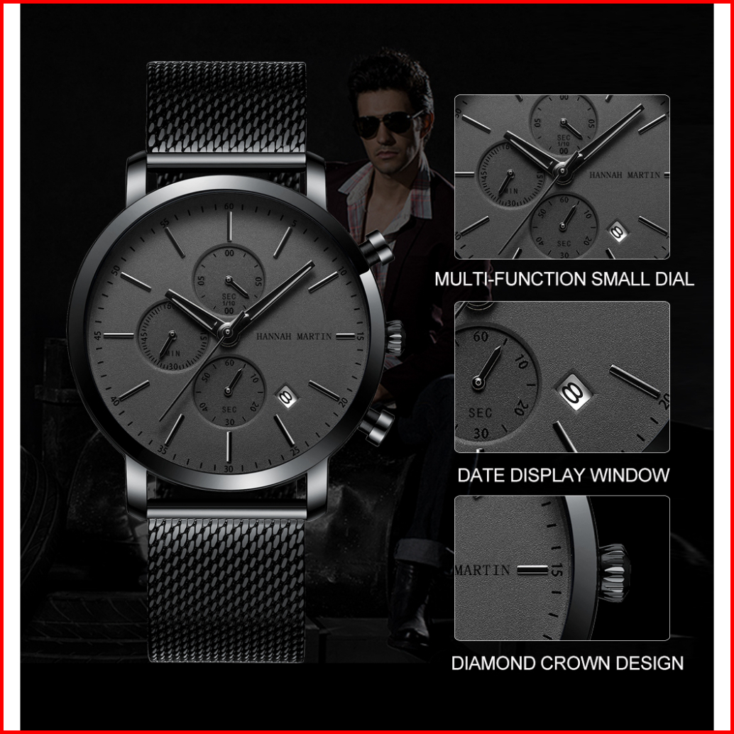 Hannah Martin Jam Tangan Pria 100 Original Kronograf Tahan Air Cowok Quartz Analog Laki 109g