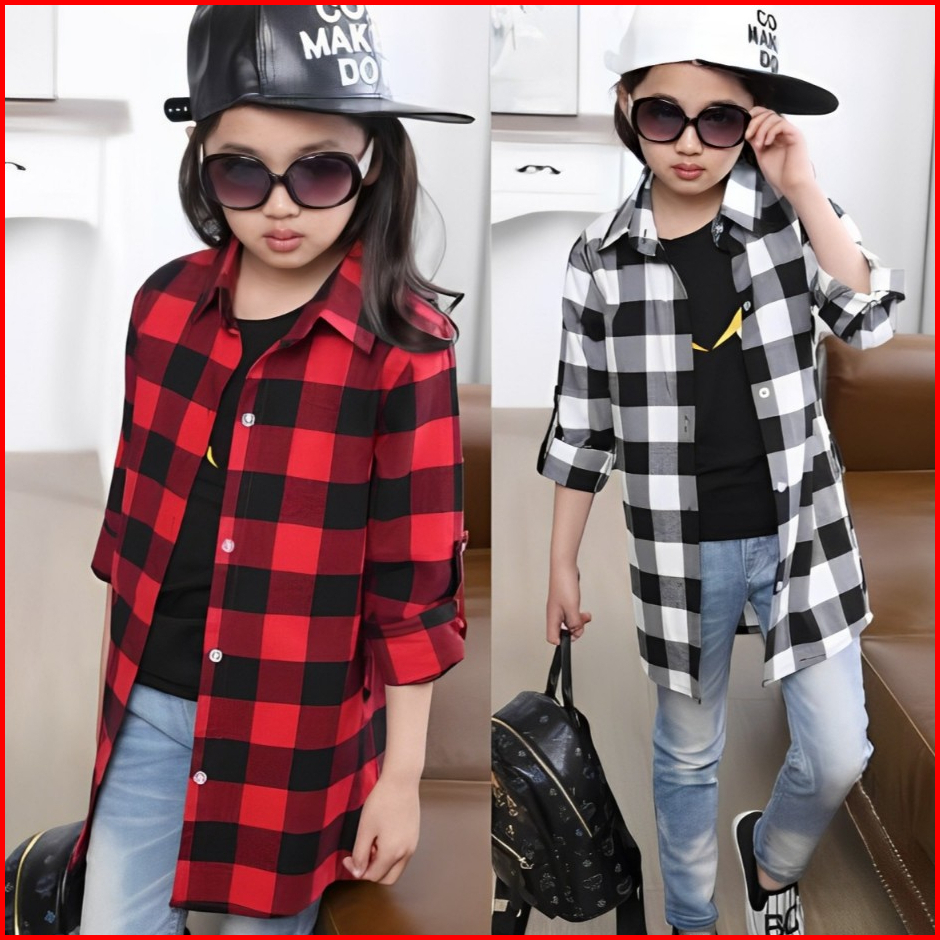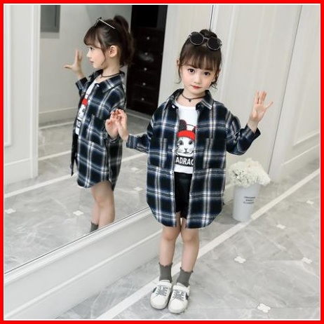 Kemeja Korea Anak Perempuan Lengan Panjang Motif Kotak-kotak Bahan Flanel Import Anak Gadis Tanggung