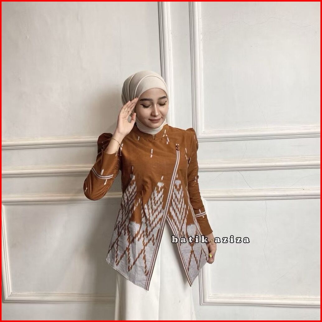 Atasan Batik Wanita Kebaya Janggan Motif Songket Lengan Panjang Bahan Katun Tebal