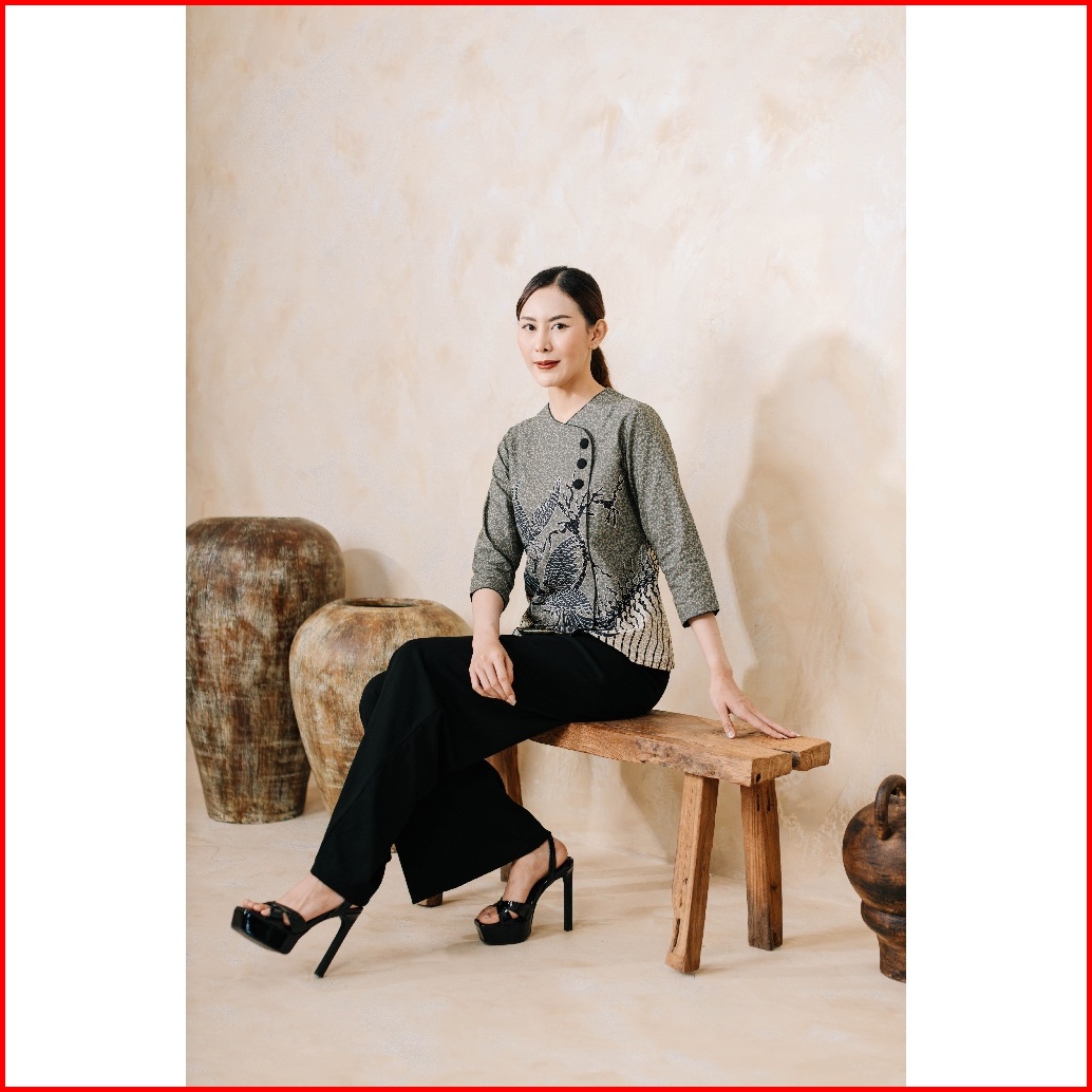 Adyatma Atmara Grey Blouse Batik Wanita Katun