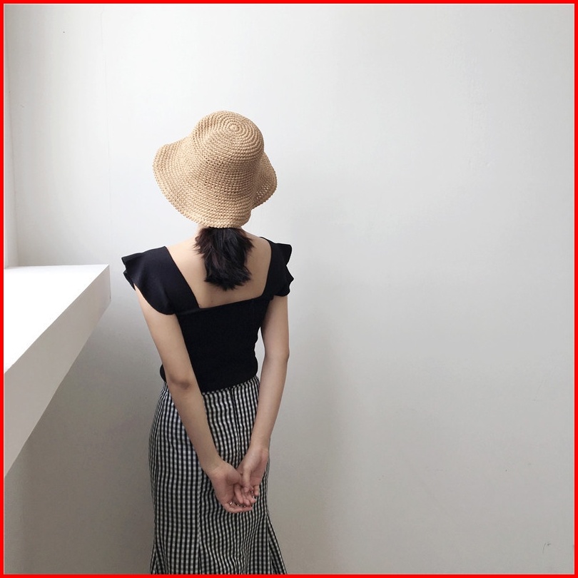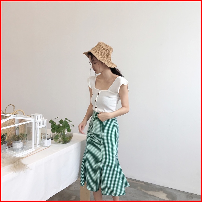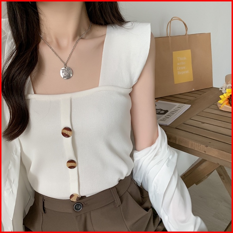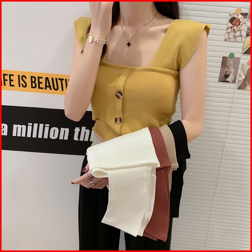 Brasay Baju Rajut Tank Top Wanita Square Neck Tank Top Style Korea 4054