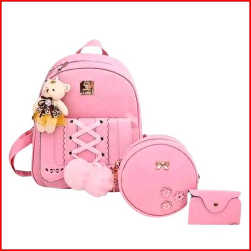 Ransel Backpack Motif Pompom Ransel Wanita Jalan Jalan