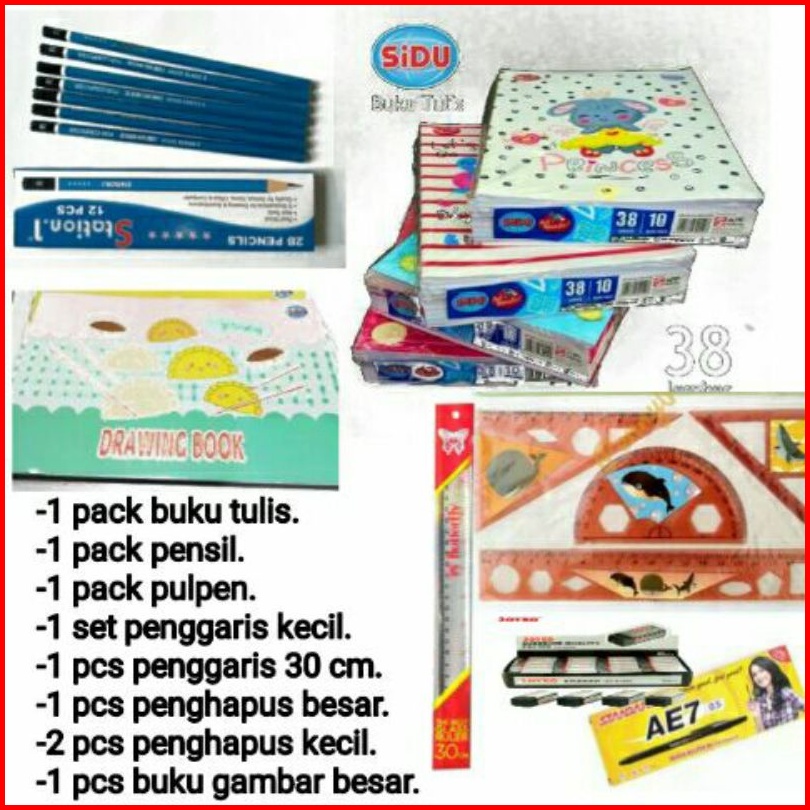8 In 1 Paket Perlengkapan Buku Sekolah Alat Tulis Sekolah Murah