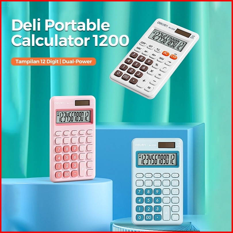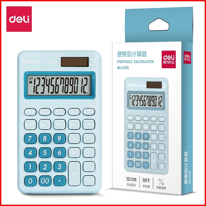 Deli Desktop Calculator Kalkulator Meja Mini Portable Dual Power Lucu 1200