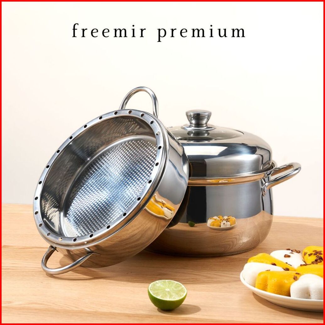 Premium Freemir Panci Kukus 2 Tingkat 26cm Kukus Nasi 20 Menit Stainless Steel Multifungsi Steamer
