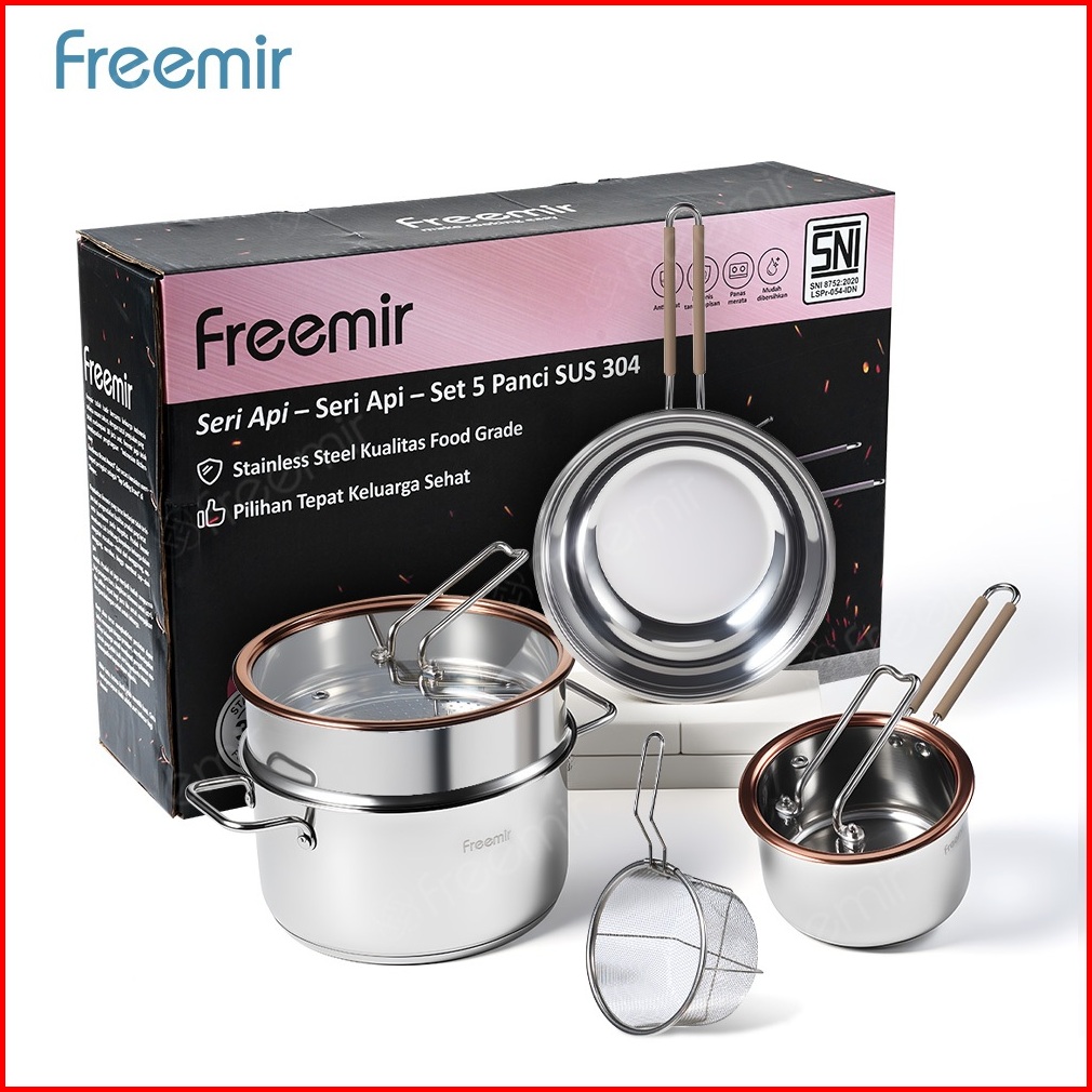 Premium New Launch Freemir Seri Api Set Wajan Panci Stainless Steel 304 Food Grade Multifungsi