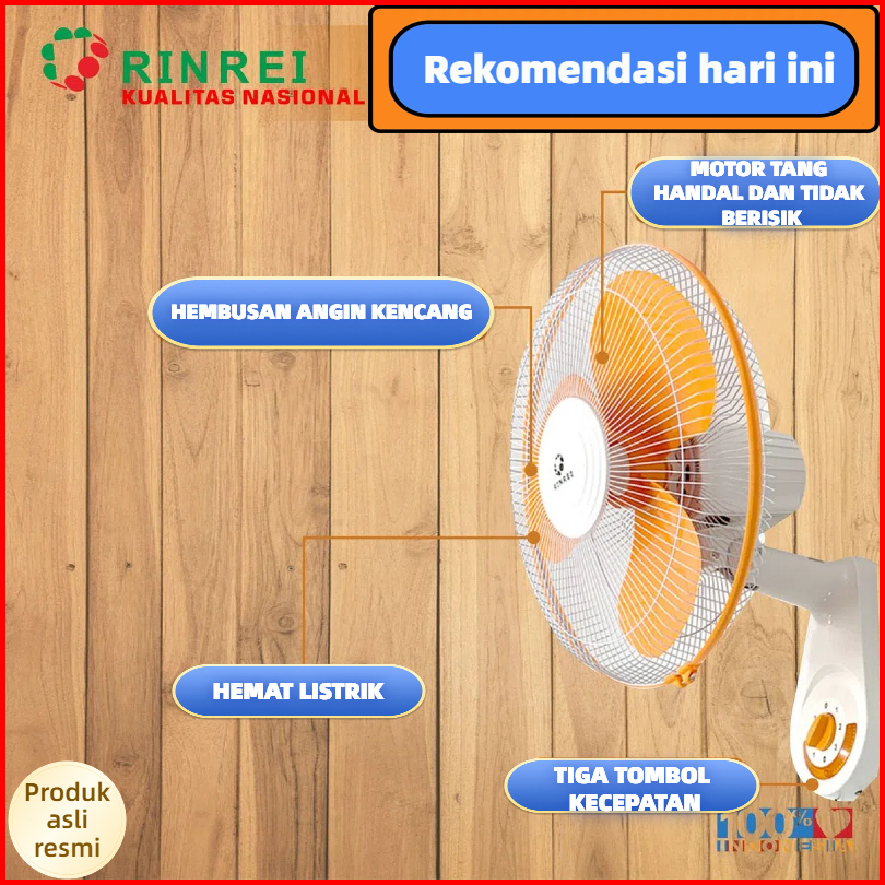 Rinrei Kipas Angin Dinding 16 Wall Fan - Garansi Resmi 2 Tahun - Bergaransi Tembok Nasional