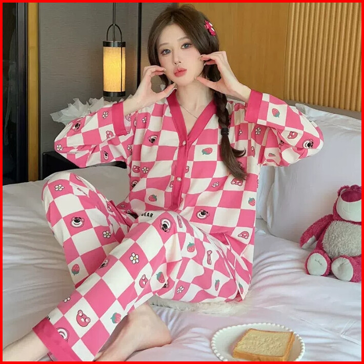 Tuta Piyama004 Baju Tidur Set Piyama Model Kancing Depan Premium Pakaian Tidur Wanita Dewasa