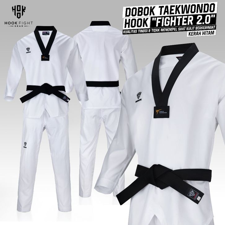 Murah Seragam Taekwondo Hook Baju Taekwondo Kerah Hitam Dobok Seragam Taekwondo Fighter Hook D2V Keren