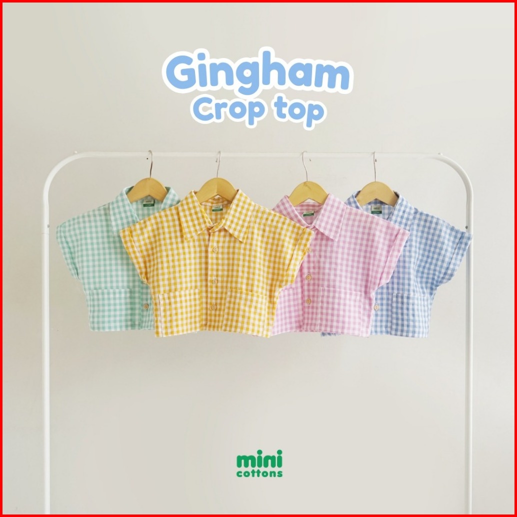 Mini Cottons Kemeja Gingham Crop Top Baju Anak Perempuan 1-12 Tahun 100 Katun