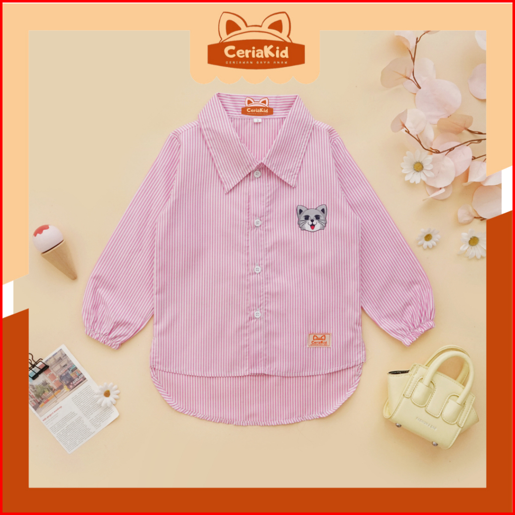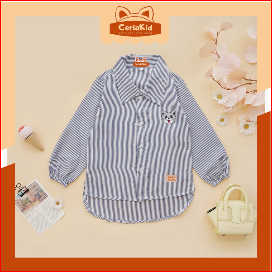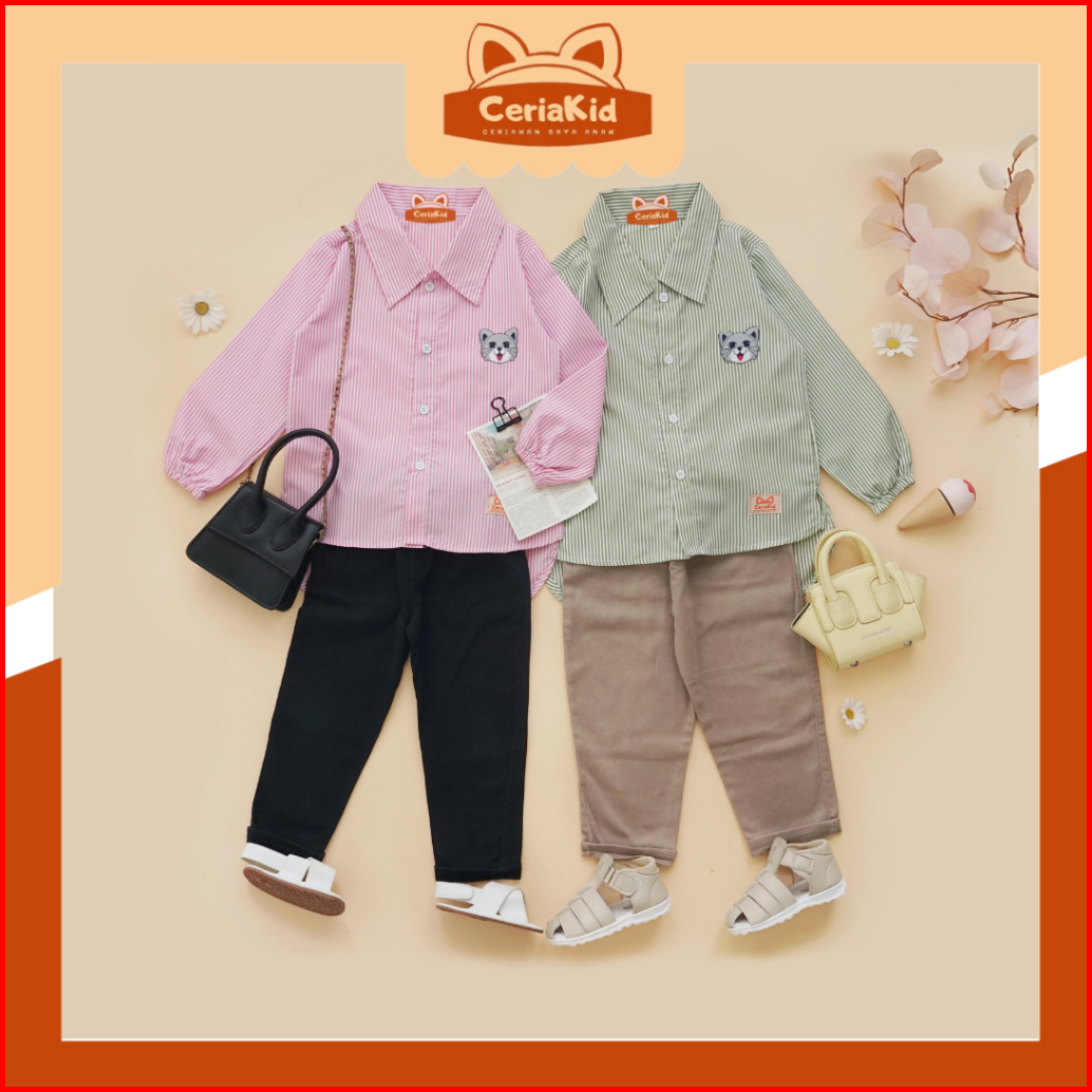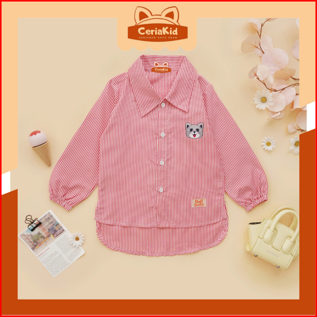 Ceriakid Kemeja Anak Perempuan Tangan Panjang Motif Salur Couple Seoul 1 - 9 Tahun