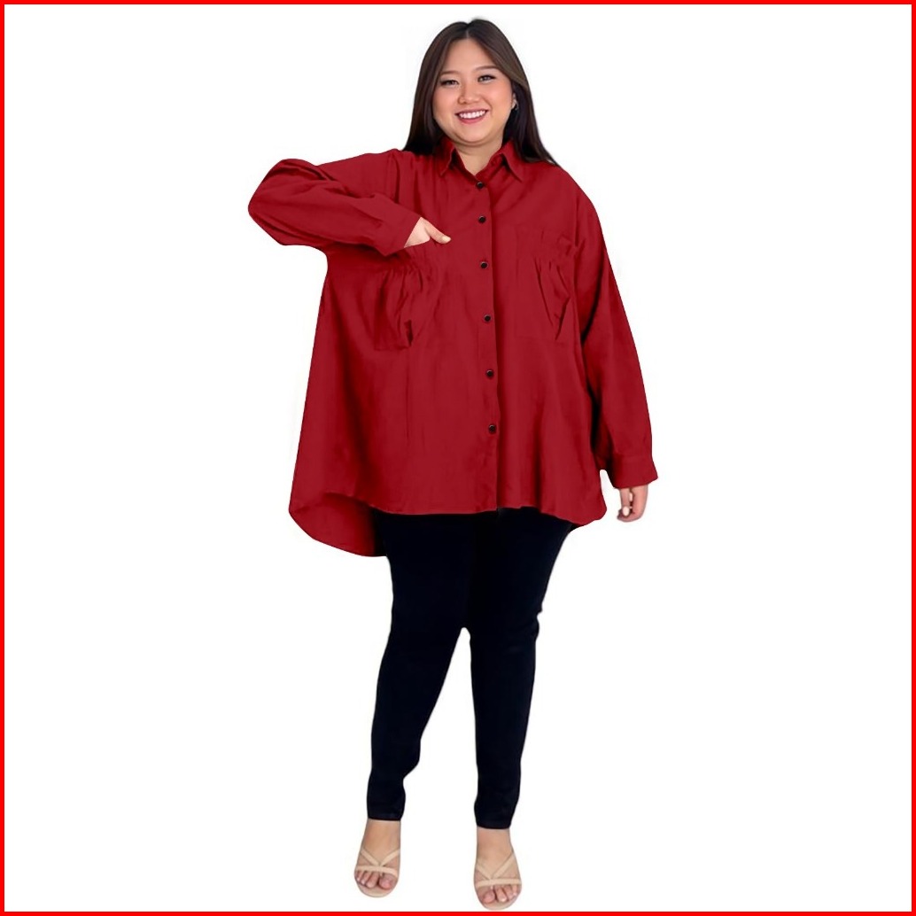Kemeja Katun Kk Jumbo Ld 120 - 140 Cm Blouse Oversize Wanita Kemeja Wanita Big Size