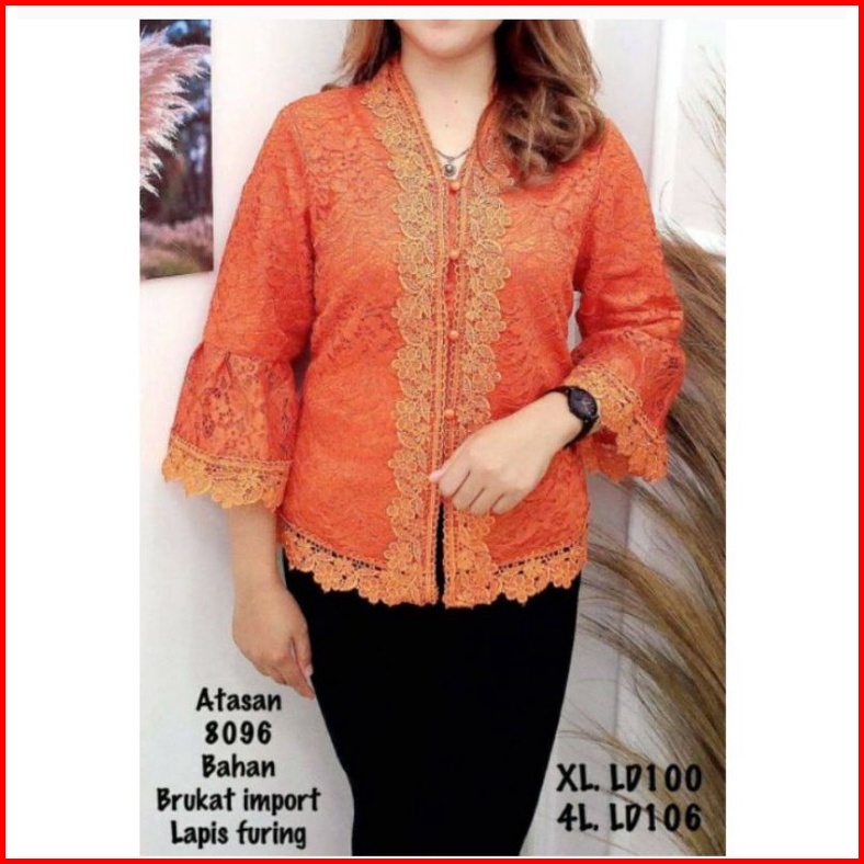 Atasan Kebaya Wanita Blouse Wanita Bahan Brokat Premium-kebaya Kartini Modern Xl-8l -atasan Elgahan 8096 Lengan Trompet