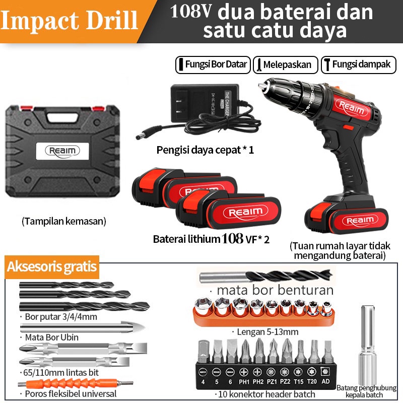 [Mall] Reaim Mesin Bor Listrik 1 Set Lengkap Impact Wrench Ori Cordless Multifungsi 13mm 16mm Apr Bosch Jumbo Baterai