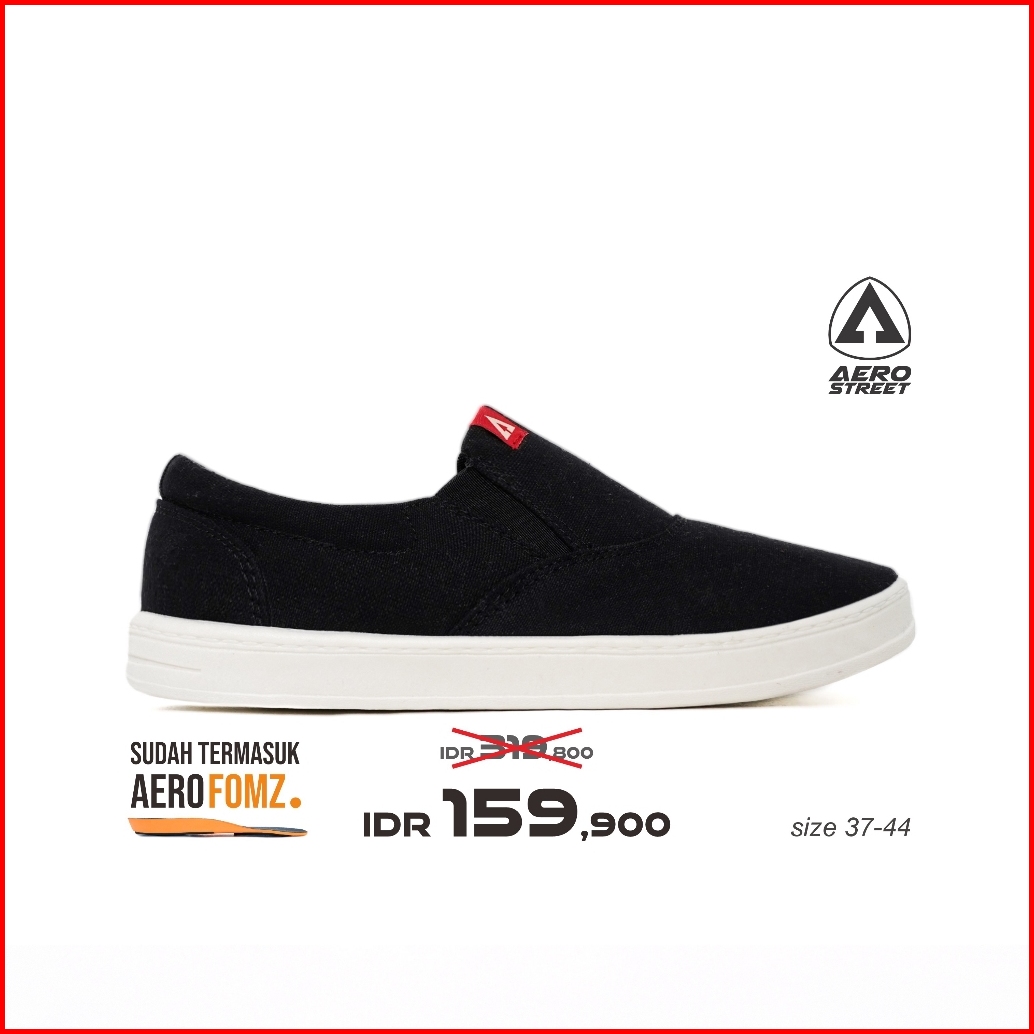 Aerostreet 37-44 Comfy 2.0 Natural Hitam Hitam - Sepatu Slip On Pria Wanita