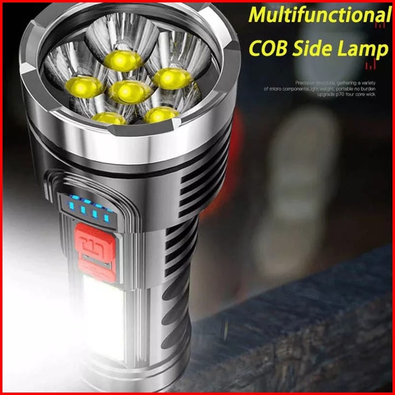 Senter Led 6 Mata 60 25w Super Terang Senter Cas Usb