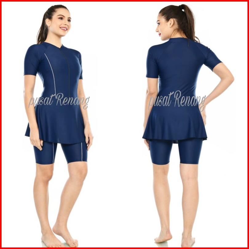 Baju Renang Wanita Lapisan Cup Bh Baju Renang Baju Renang Polos Dv-rok Polos Tangan Pendek Dewasa