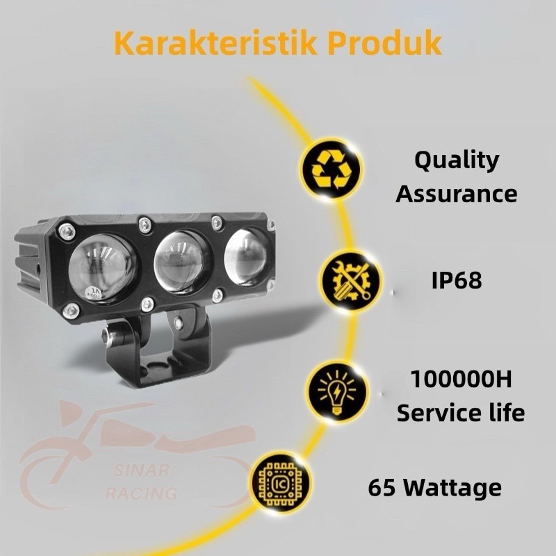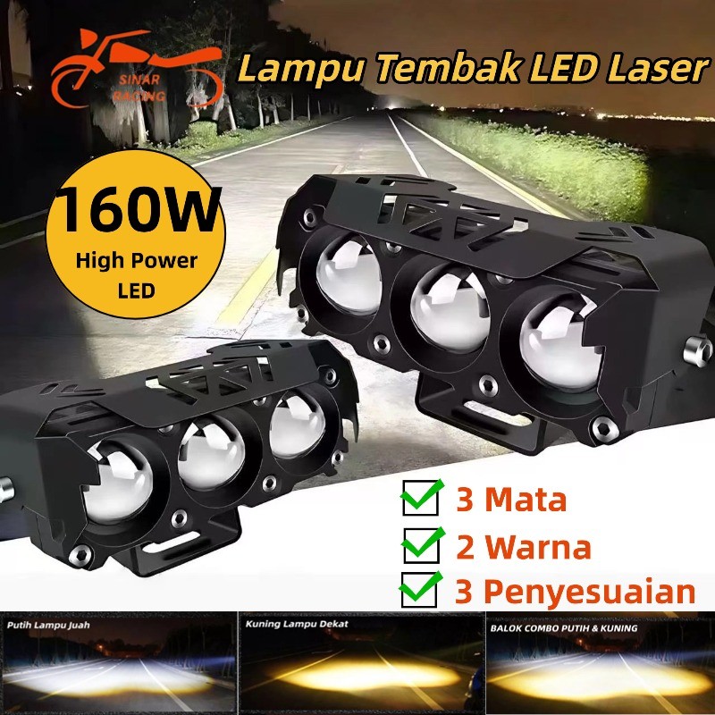 [Best Seller] Lampu LED Tembak 3 Mata Sinar Rng 160W Super Terang IP68 Waterproof Kuning Putih 100000Jam