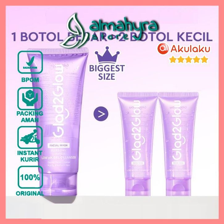 GLAD2GLOW - G2G Blueberry Ceramide Low pH Gel Cleanser / almahyra store / original / skincare kosmetik wajah terlaris /