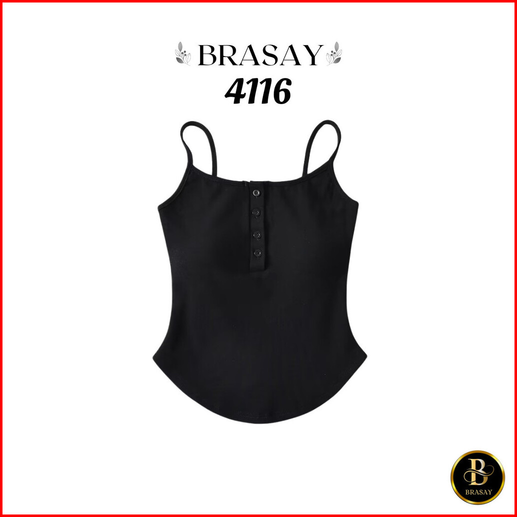 Brasay Korean Button Up Straps Ribbed Tanktop Wanita Streetwear Fashion Tanktop Import Premium 4116