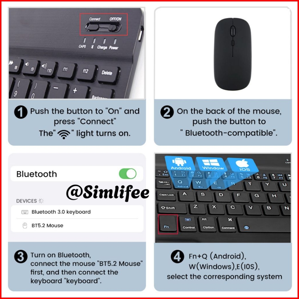Keyboard Bluetooth Dan Mouse Wireless 10 Inch Lightweight Portable Pc Tablet Ios Android Hp