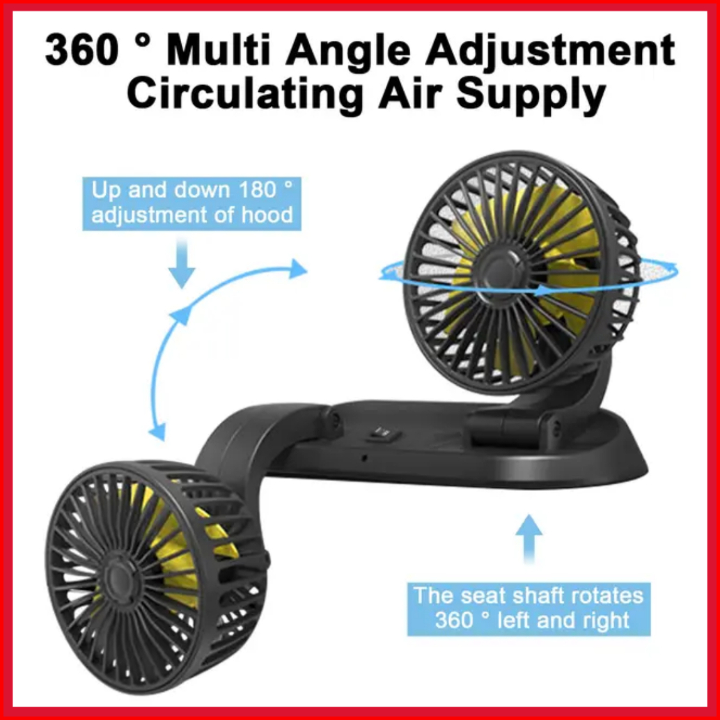 Kipas Angin Mobil Car Fan 12 Volt - 24v Kipas Dasbor 2 Kepala Dingin Ac Truk Dapat Disesuaikan 360