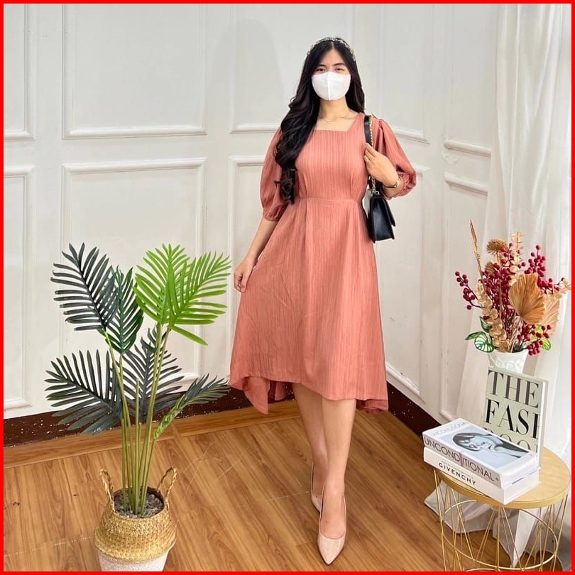 Selin Dress Casual Wanita Dress Wanita Lengan Pendek Kekinian Dress Shirt Polos Wanita Dress Pesta Wanita