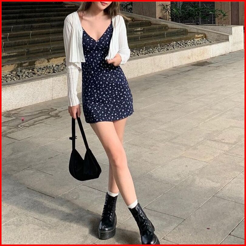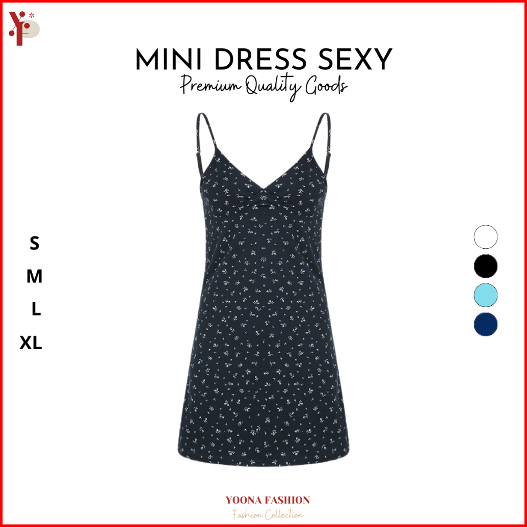 Yn Bj092 Mini Dress Sexy Motif Bunga Dress Tanpa Lengan Korean Fashion Style