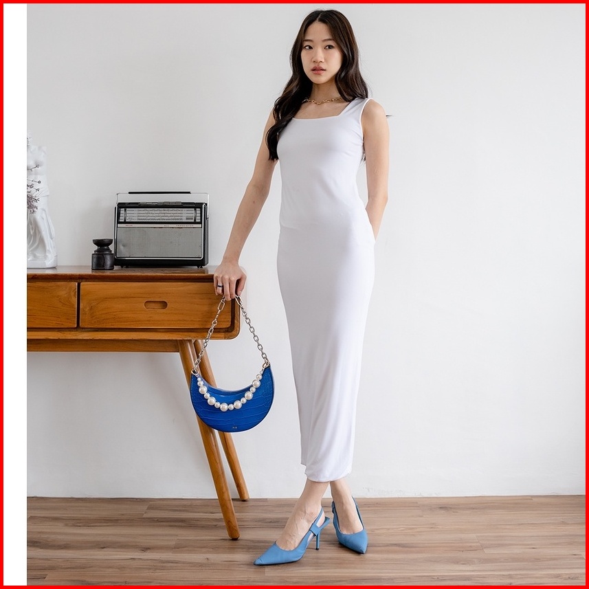 Nzinga Eva Midi Midi Dress Wanita Slim Fit Polos - Baju Tanpa Lengan Square Neck Stylish S - Xxl